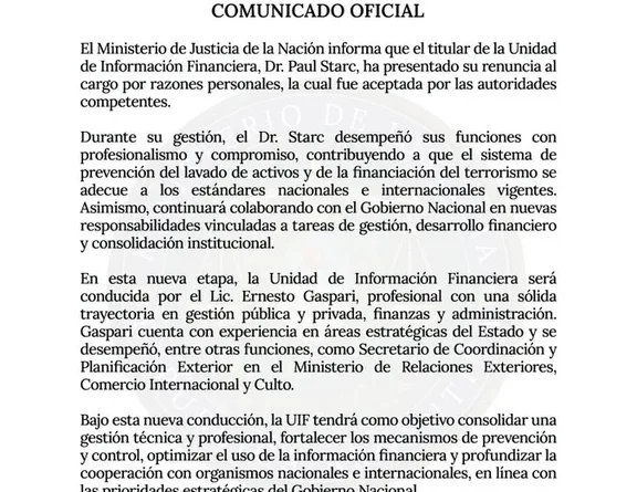 Leer másEl Gobierno Nacional anunció este jueves un cambio en la cúpula de la Unidad de Información Financiera (UIF). Según supo la Agencia