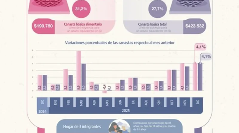 Leer másUna familia de cuatro integrantes requirió de ingresos por $1.308.713 para no caer en la pobreza en diciembre pasado y de $589.510 para no caer en