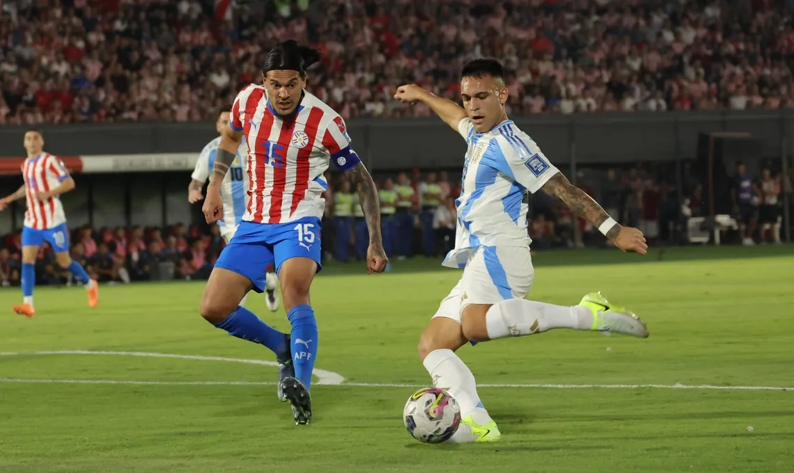Corrían 12 minutos cuando Enzo Fernández le puso un pelotazo precisoi a Lautaro Martínez por izquierda y el Toro, que esataba en la misma línea que un defensor paraguayo, definió con un disparo bajo y perfecto que superó la resistencia de Roberto Fernández.