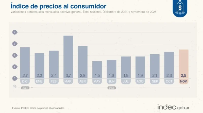 El IPC subió 2,5% en noviembre de 2025 y la inflación interanual alcanzó el 31,4%