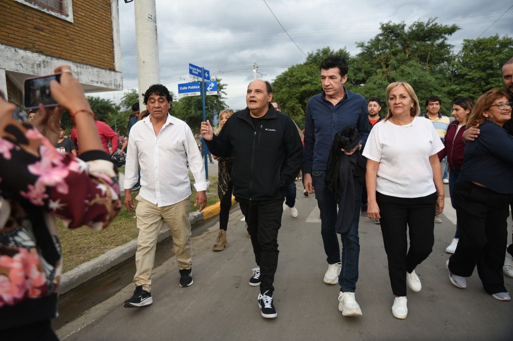 «Lo venimos haciendo hace bastante; a veces inauguramos los asfaltos con el acto tradicional de corte de cinta y otras veces caminamos. Lo importante es que en este barrio, hace un año y medio no tenía agua ni cloaca en gran parte, y ahora hemos hecho esta transformación» expresó el jefe comunal a los presentes.