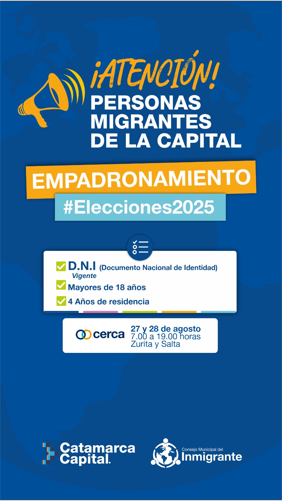 El municipio de la Capital, en colaboración con el Consejo Municipal del Inmigrante, hace un llamado a todas las personas migrantes residentes en la ciudad a participar en el proceso de empadronamiento electoral. Este registro es un paso muy importante para garantizar el derecho a voto y fomentar una participación activa en la vida democrática local.
