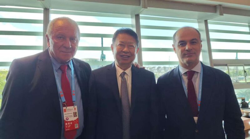 En su reciente visita a China, el vicegobernador Rubén Dusso se reunió junto al embajador argentino en China, Marcelo Suárez Salvia, en un encuentro que incluyó la presencia de directivos de la empresa Zijin, entre los que se incluyó en un momento determinado el propio presidente de la firma asiática, Sr. Chen Jinghe.