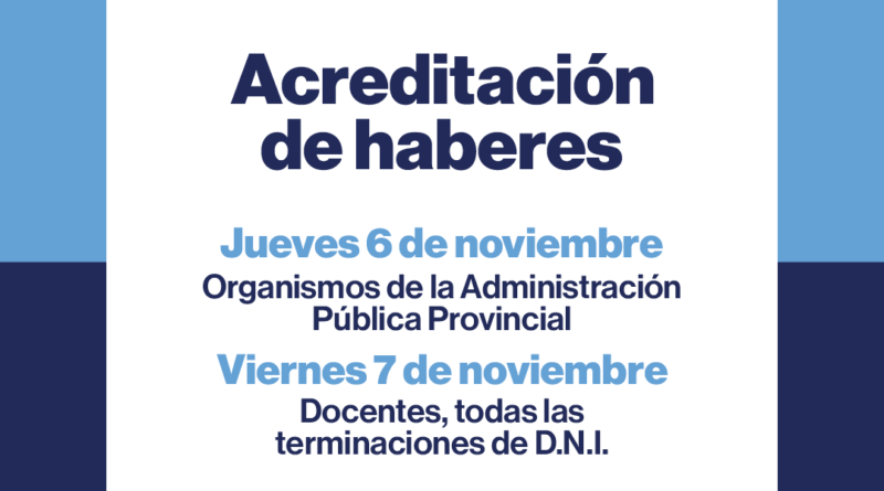 El Ministerio de Hacienda y Obra Pública comunica que los haberes de empleados públicos y docentes correspondientes al mes de octubre de 2025 se acreditarán según el siguiente cronograma: