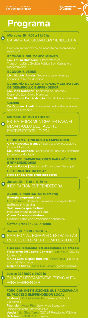 Con la clara finalidad de apoyar desarrollos locales y al conmemorarse la “Semana Global de Emprendedores”, el municipio llevará a cabo un importante encuentro que contará con exposición apuntadas a una “Ciudad Emprendedora”, “Economía Verde”, “Estrategias de Desarrollo” y mucho más.