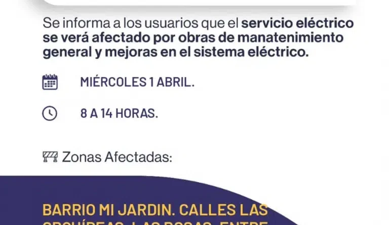 Desde la empresa recomendaron a los vecinos tomar las precauciones necesarias durante el horario indicado, ya que las tareas buscan optimizar el servicio eléctrico en la zona.