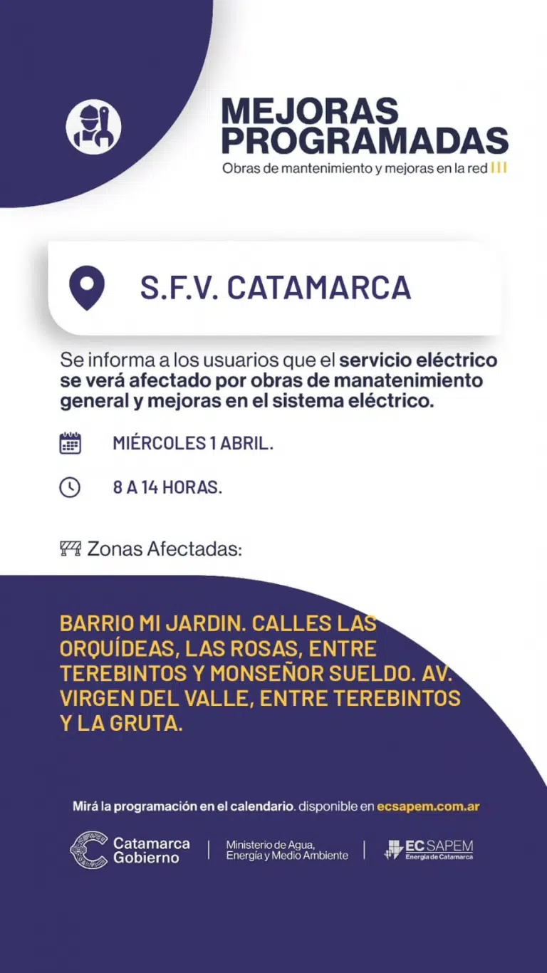 Desde la empresa recomendaron a los vecinos tomar las precauciones necesarias durante el horario indicado, ya que las tareas buscan optimizar el servicio eléctrico en la zona.