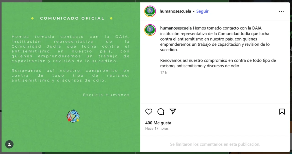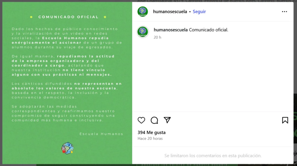 El Colegio Humanos sacó un comunicado por los cantos antisemitas de sus alumnos en el viaje de egresados