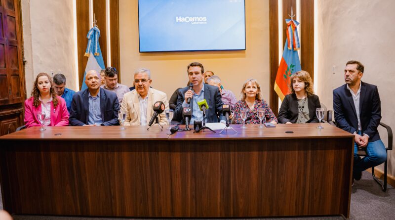 Durante el anuncio estuvieron presentes las diputadas Claudia Palladino y María Argerich, y representantes de todos los gremios estatales.