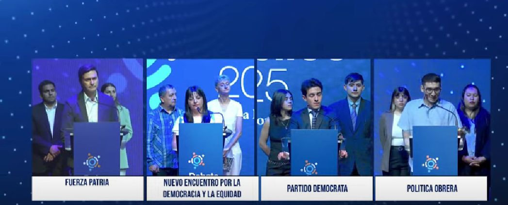 La moderación estuvo a cargo de los comunicadores Lucía Acosta y Víctor Acesol, quienes guiaron a los candidatos a través de tres instancias claramente definidas: una exposición inicial de propuestas, una ronda de preguntas cruzadas entre los participantes y, finalmente, un mensaje de cierre por parte de cada uno de los aspirantes.