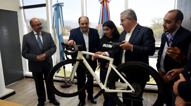 El gobernador Raúl Jalil y el intendente Gustavo Saadi entregaron una bicicleta de ruta de alta gama a la ciclista Guadalupe Díaz, un impulso fundamental para que la deportista continúe creciendo en su carrera profesional. la flamante bicicleta cuenta con un cuadro de carbono, grupo Shimano 105 electrónico de 11 velocidades, manubrio robal de carbono integral y ruedas Roval de perfil 50, también de carbono.