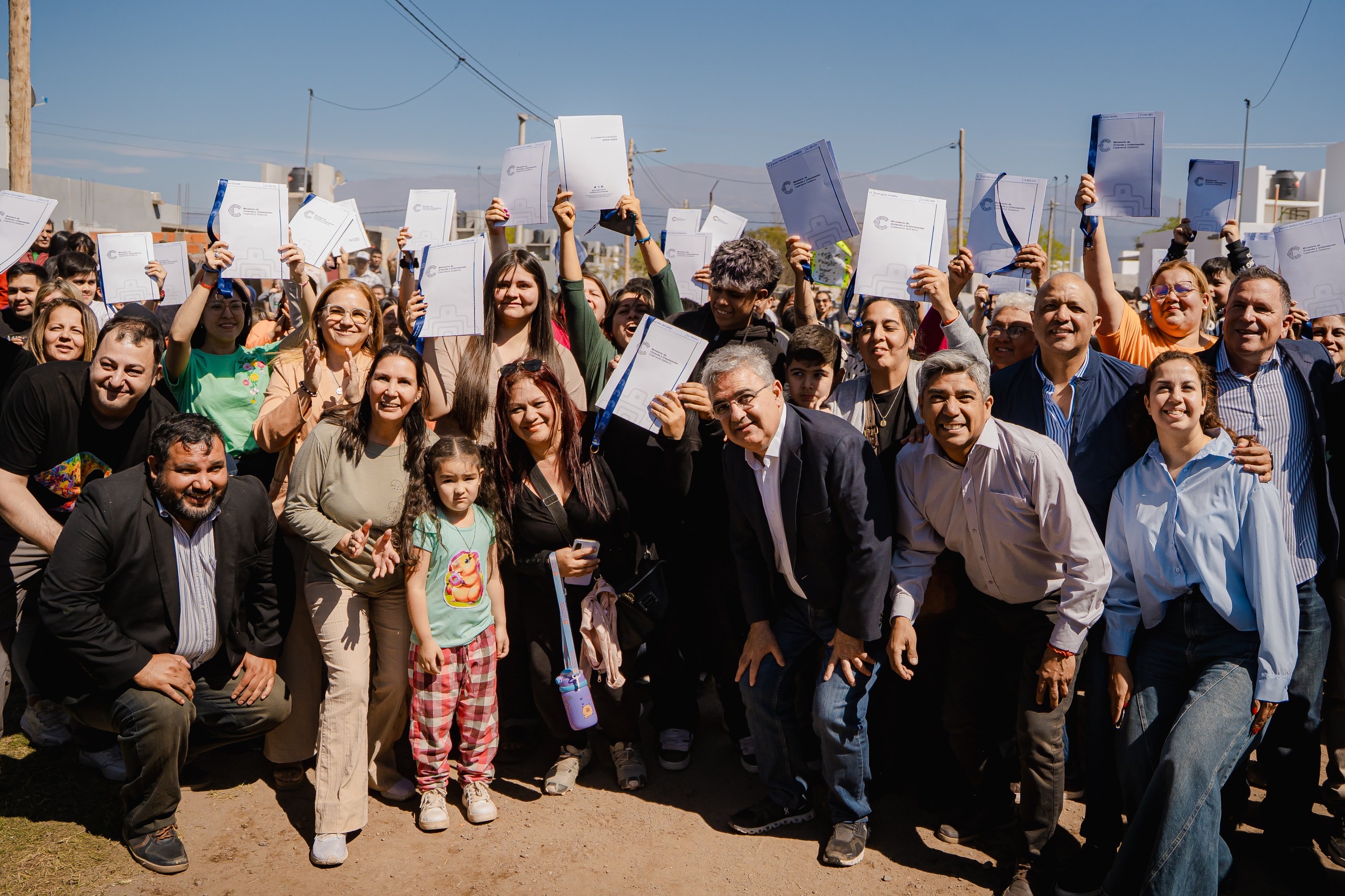 En el mismo acto, el Instituto Provincial de la Vivienda (IPV) hizo entrega de 119 títulos de propiedad a adjudicatarios de distintos barrios de Valle Viejo, regularizando así la situación dominial de numerosas familias.