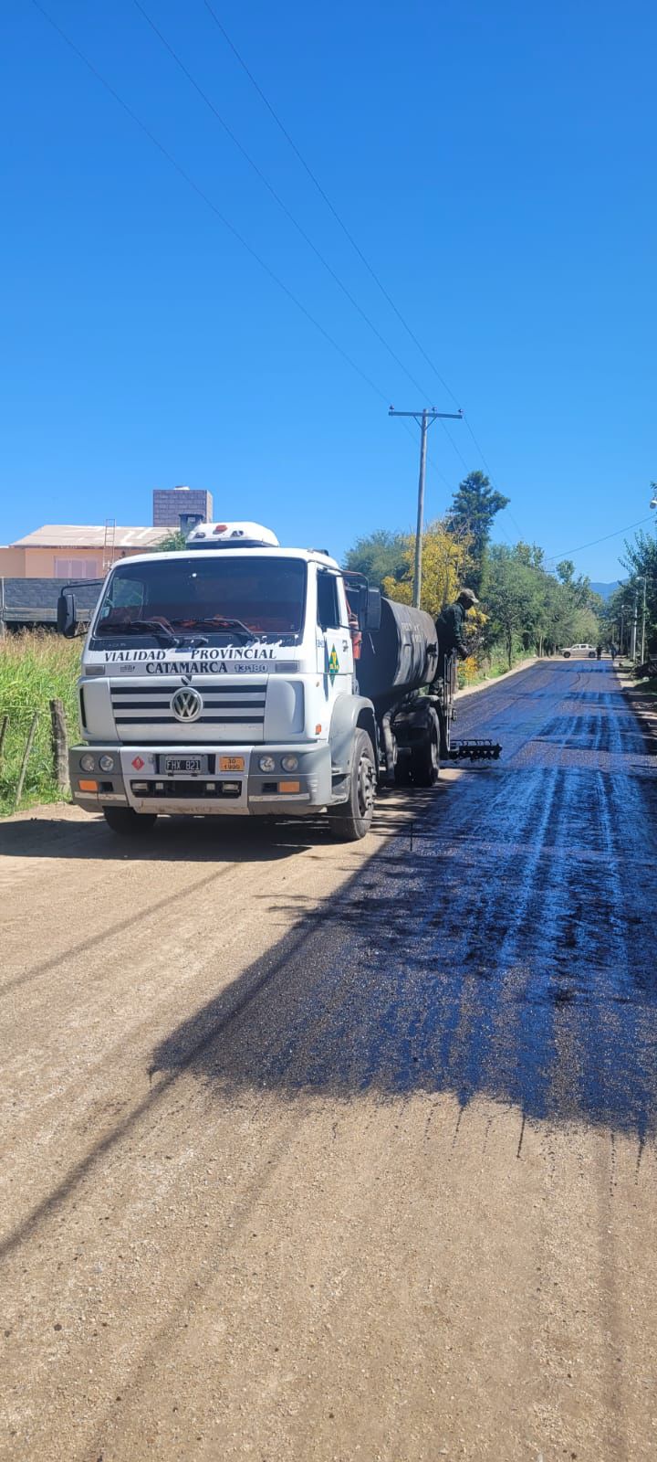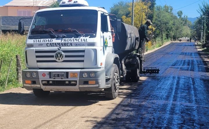 Vialidad Provincial continúa ejecutando trabajos de riego de imprimación y colocación de carpeta asfáltica en calles urbanas del distrito Huaco, en Andalgalá.